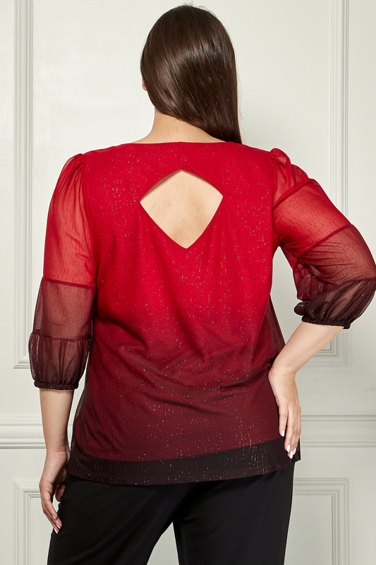 Plus Double Bubble Sleeve Cutout Back Detail Popover Top