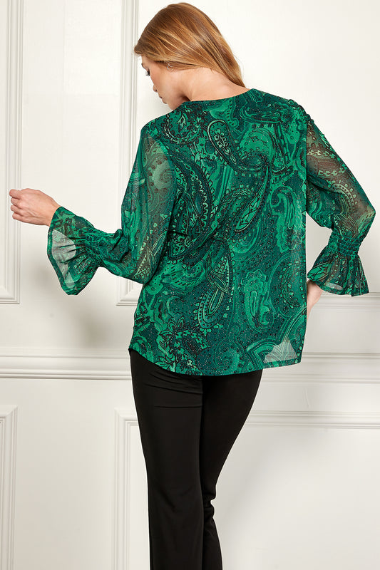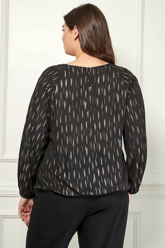 Plus Long Sleeve V-Chain Trim Cutout Bubble Top