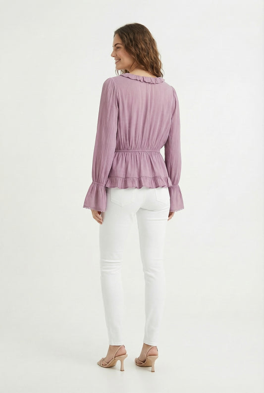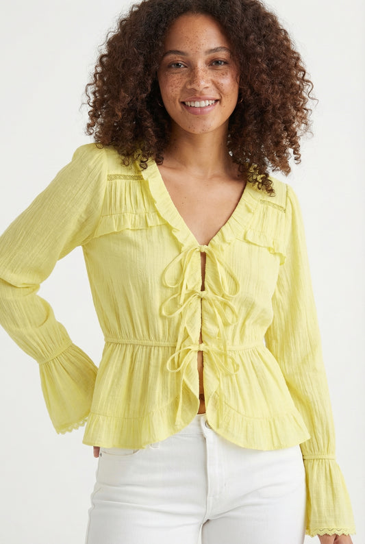 Women's June & Hudson Long-Sleeve Tie-Front Ruffle Blouse