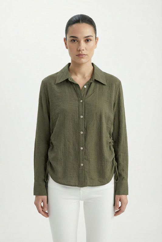 Women's June & Hudson Relaxed Side-Tie Long Sleeve Shirt