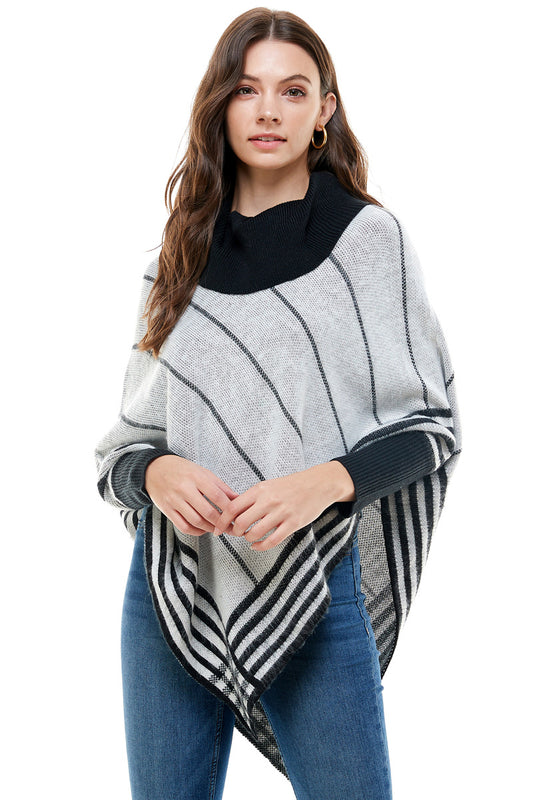 Amelia Relaxed Turtleneck Striped Poncho Sweater