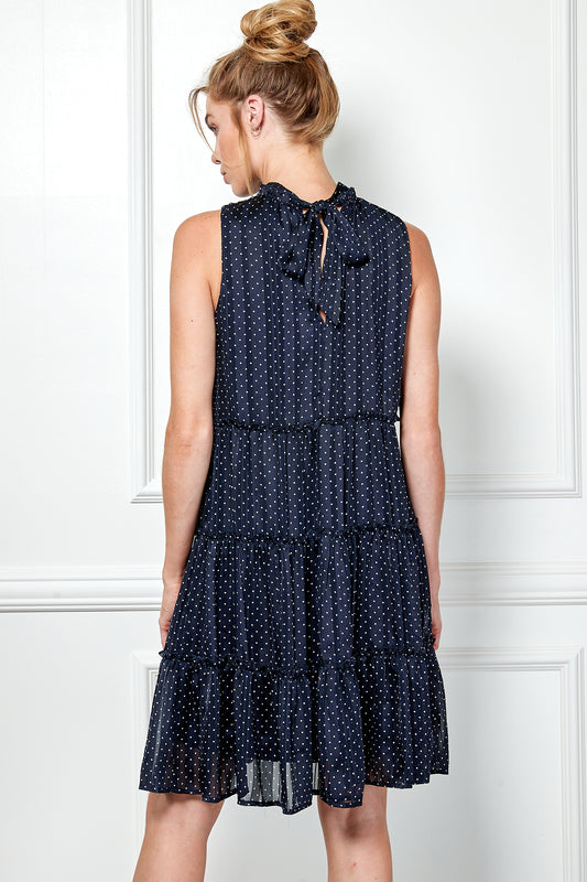 Sleeveless Three Tier Tie Back Ruffle Neck Dress