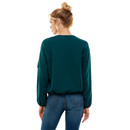 Sold outLong Sleeve Button Side Cowl Neck