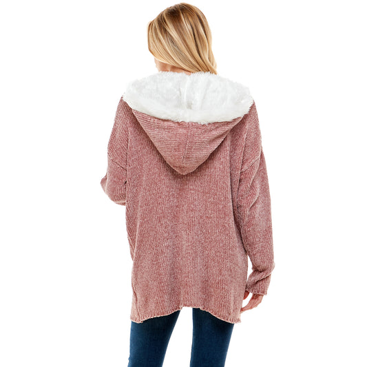 Cardigan Sweater With Hood And Fur Trim