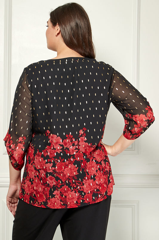 Plus Long Sleeve V-Chain Trim Cutout Bubble Top